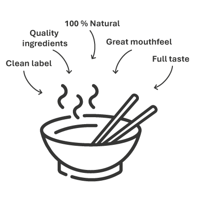 Stocks are clean label ingredients, meaning that only the bones are boiled in water and nothing else is added. The entire range is free from GMOs, E-numbers, phosphates, or any other additives and can go directly into your application as a clean label ingredient.